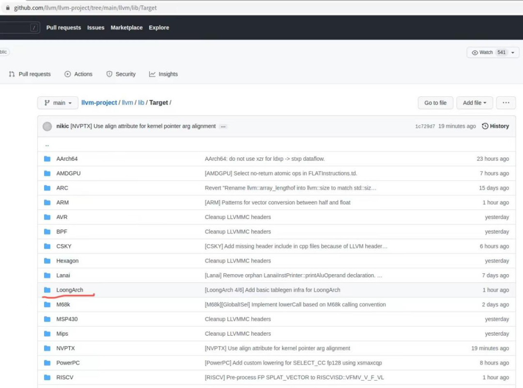 ▲ 主干源码库中出现 LoongArch 目录 | 图源:龙芯中科