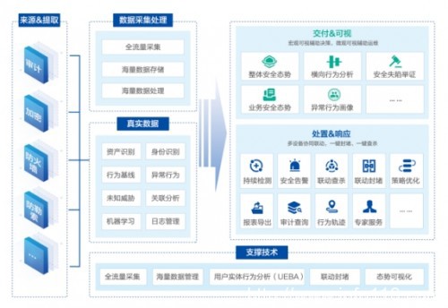 动静结合风险监测: 从通过内置风险策略的静态风险防护,到通过机器学习建立资产、身份基线,从身份基础信息认证程度、身份属性、历史行为可信度等多个维度综合计算风险评分,由风险评分及变化幅度间接反映风险的紧急度与危害性,从而联动安全组件动态调整访问控制权限,实现从静到动、动静结合的安全防护。