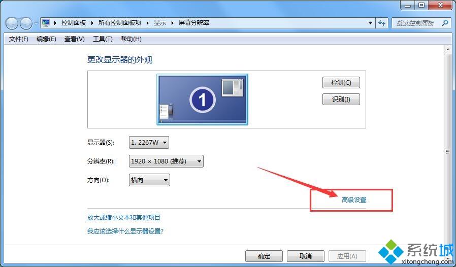 2、点击分辨率设置面板右下角【高级设置】进入;;