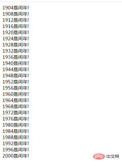 <?php header("Content-type:text/html;charset=utf-8"); for($year = 1901; $year <= 2000; $year++){ $time = strtotime("{$year}-02"); if (date("L",$time)){ echo $year."是闰年<br>"; } } ?>