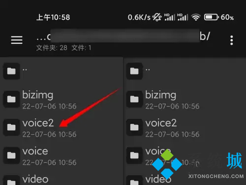 4.点击voice2的文件夹进入音频缓存目录;