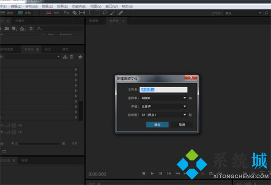 7.在弹出的“新建音频文件”窗口中,随意设置文件名,其他保持默认设置,点击“确定”;