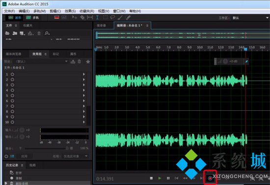13.完成录音后,“编辑器”界面的录音波形会显示成“全选”状态的白色;