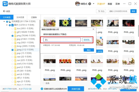 4.再在弹出的窗口中设置下恢复文件的保存位置,需要保存到其他安全路径下,以防出现恢复的问题;