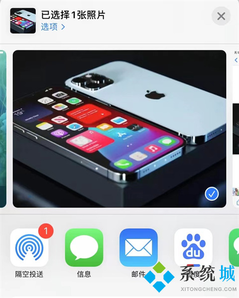 3.在iPhone13上,点击相册中照片,点击分享;