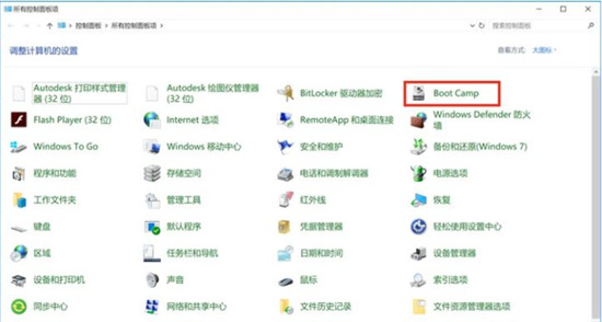 1.打开windows系统的控制面板,选择Boot Camp进入;