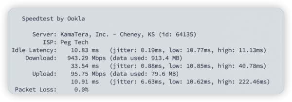 使用 Speedtest CLI 对带宽速度进行测试,结果如下: